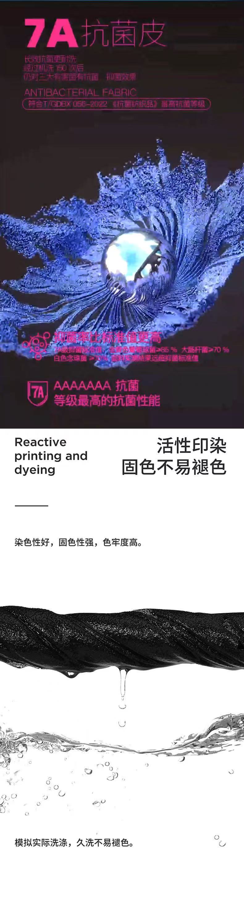 除了強大的速干性能,它的抗菌防螨功能也十分出色。7A抗菌技術,全方位守護你的健康,有效防止因細菌滋生而產生的異味和皮膚問題;防螨蟲設計,讓你的衣物遠離螨蟲侵害,給你一個安心的穿著環境。