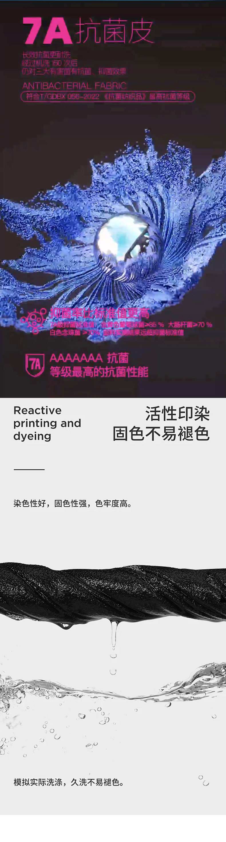 干爽黑科技面料,7A抗菌、極速秒干、防螨蟲